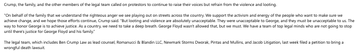 “Mr. Floyd’s death was a homicide by officers who taunted him while holding him down for more than eight minutes,” Crump added. “And the officer who stood by doing nothing was a physical blue shield—a living symbol of the code of silence.”